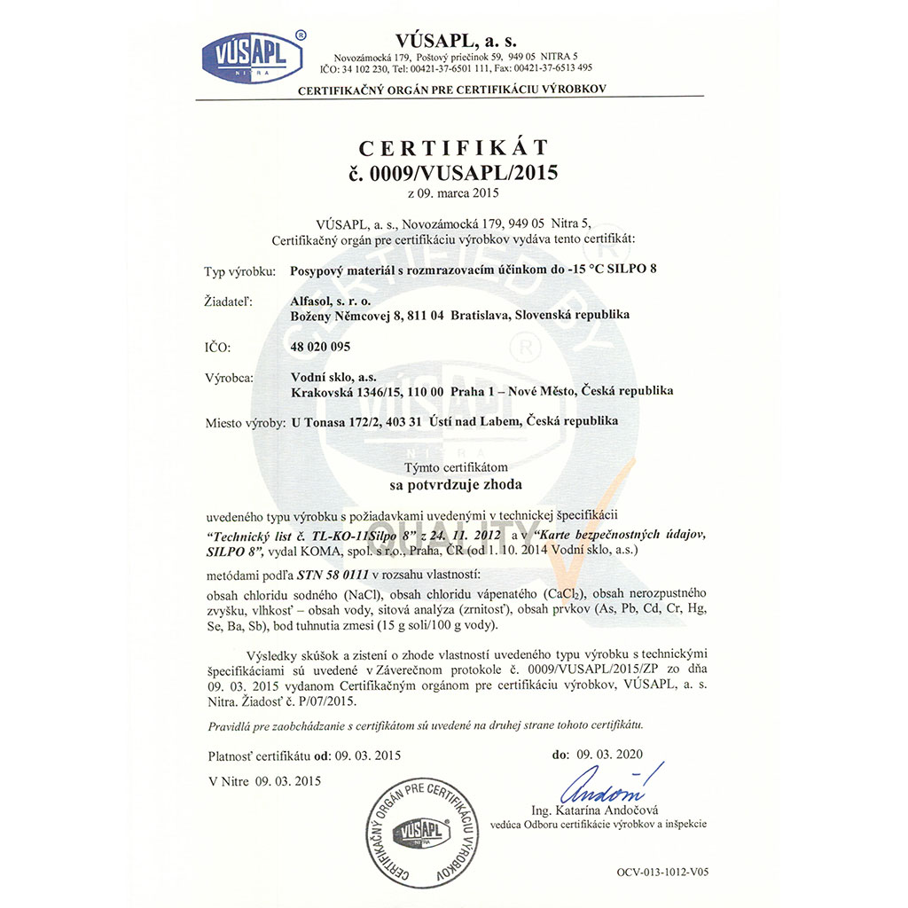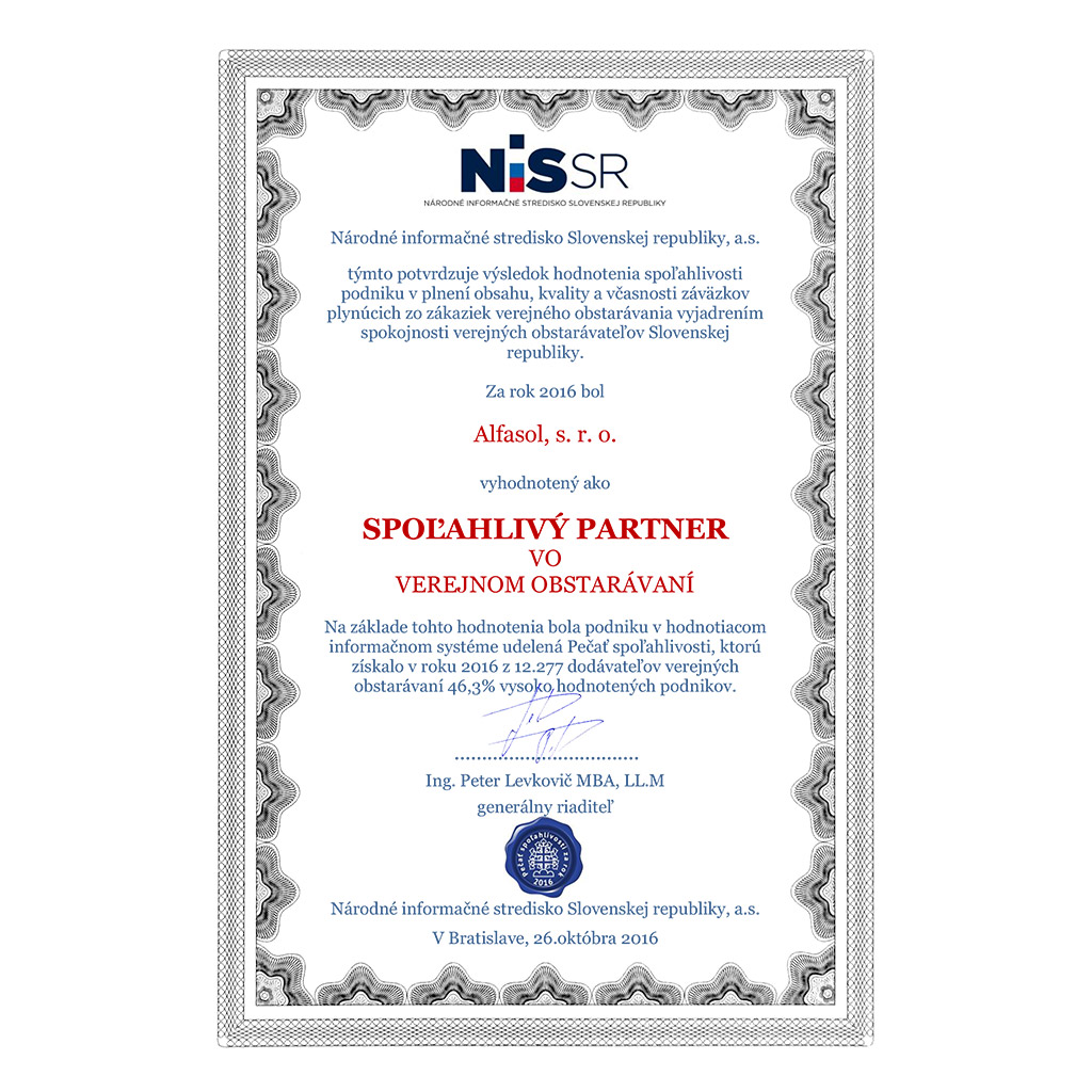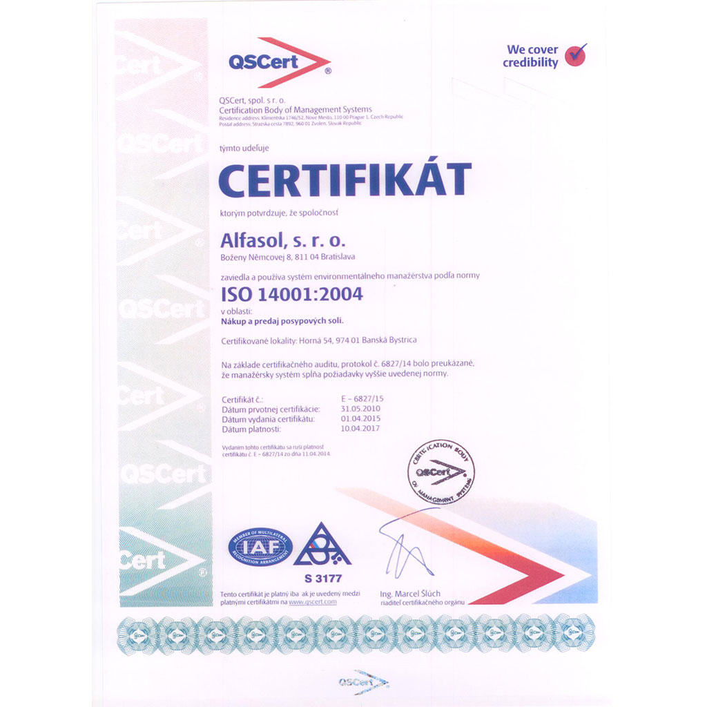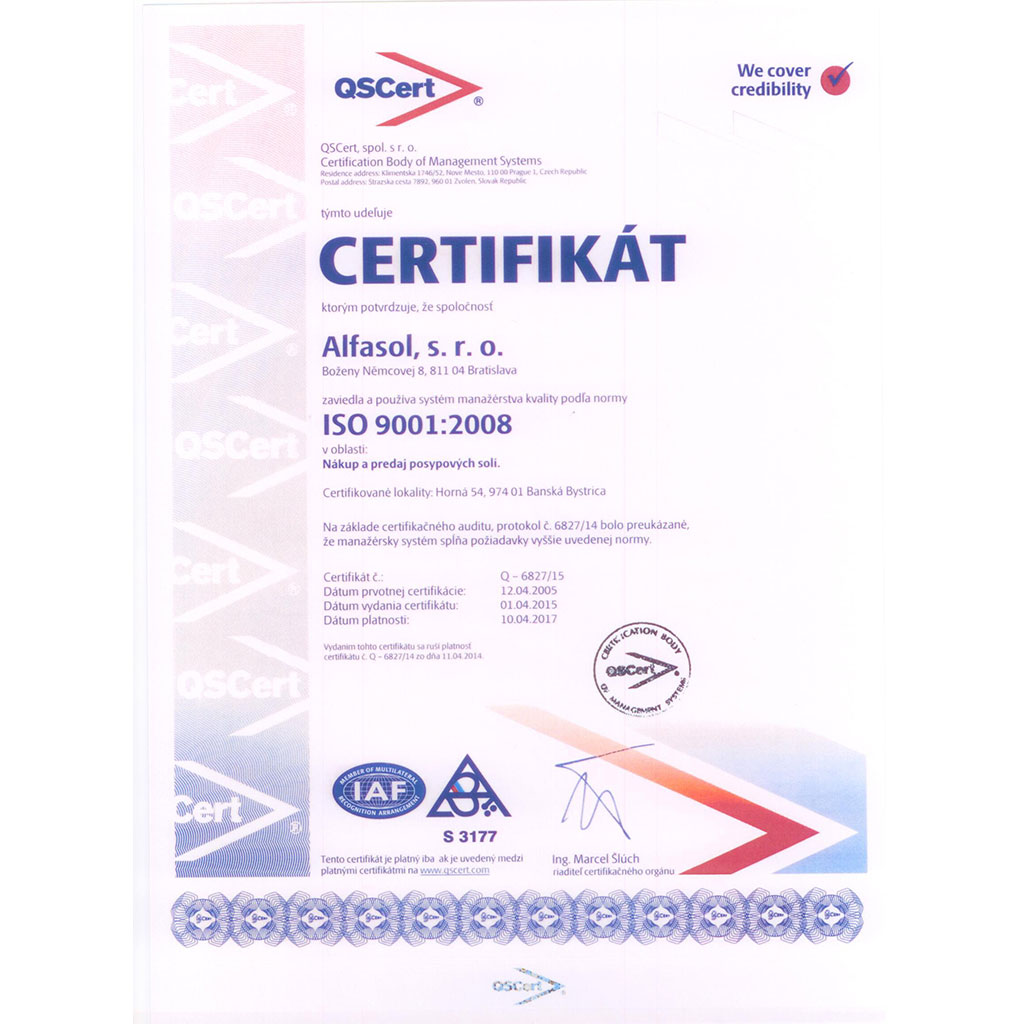 Naša spoločnosť je držiteľom niekoľkých certifikátov