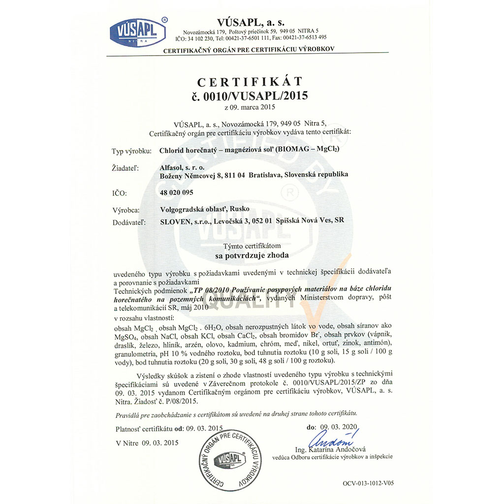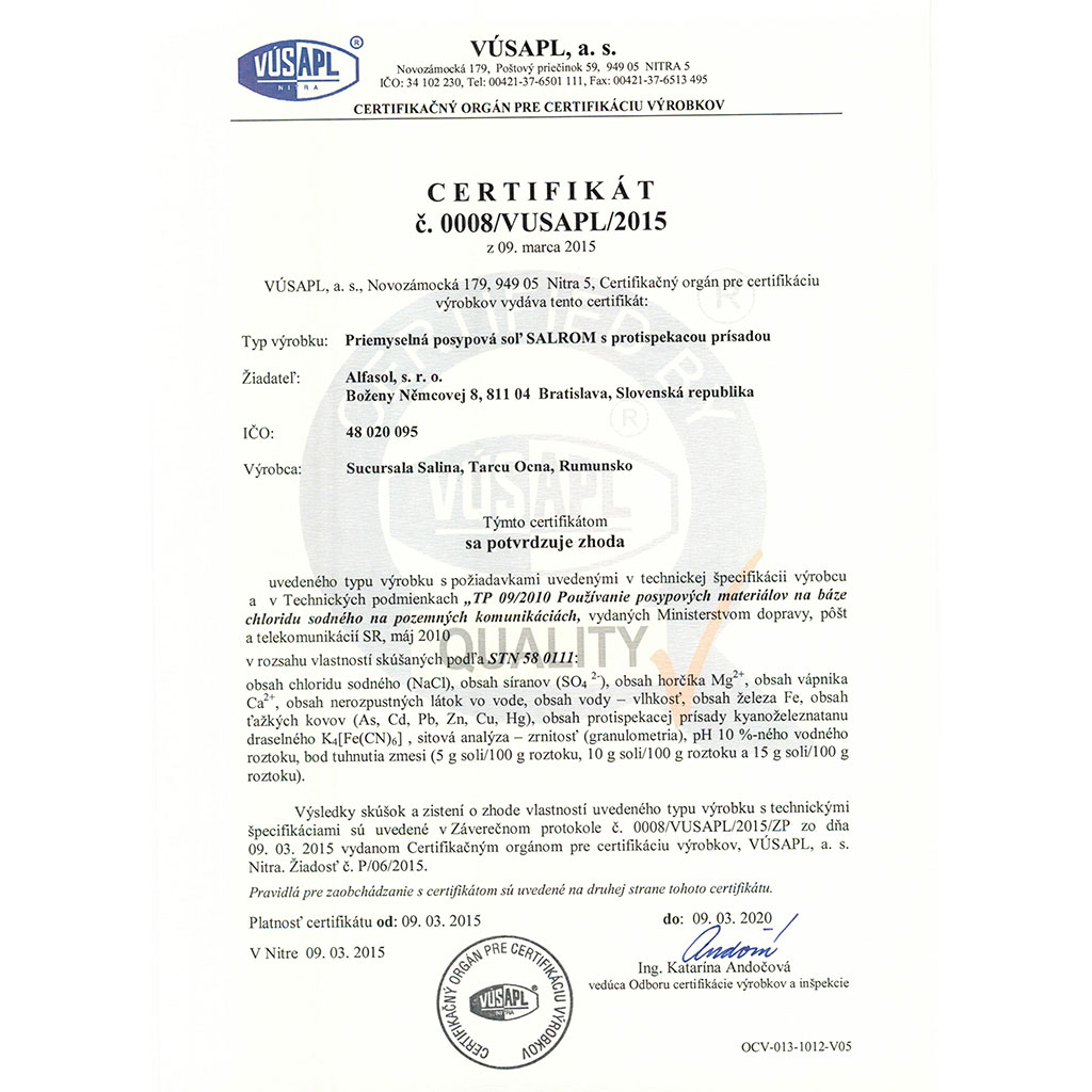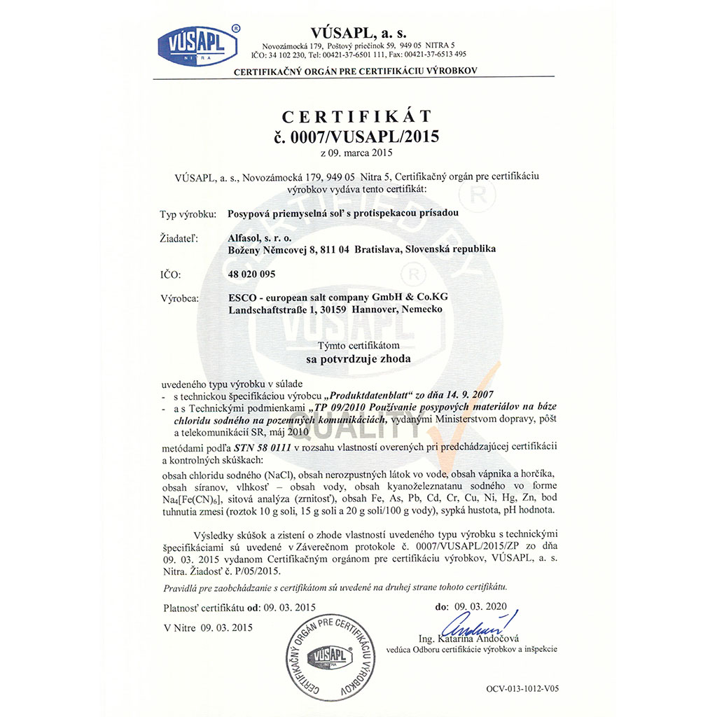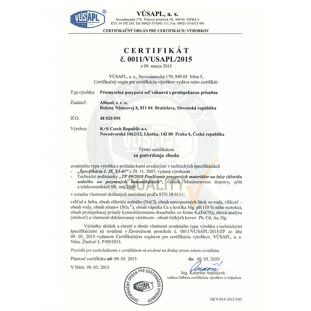 Naša spoločnosť je držiteľom niekoľkých certifikátov